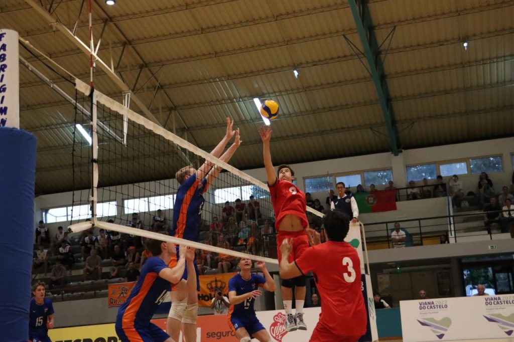 The third day of competition of the WEVZA Men’s Under-19 International Tournament defined the games for the final stage of the competition: 15h00 – Spain x Portugal (3rd in Pool A x 4th in Pool B); and semi-finals between France v Netherlands (6 pm) and Italy v Germany (9 pm), all tomorrow at Pavilhão de Santa Maria Maior, in Viana do Castelo, European City of Sport in 2023. Matches can also be followed live on Volei TV.