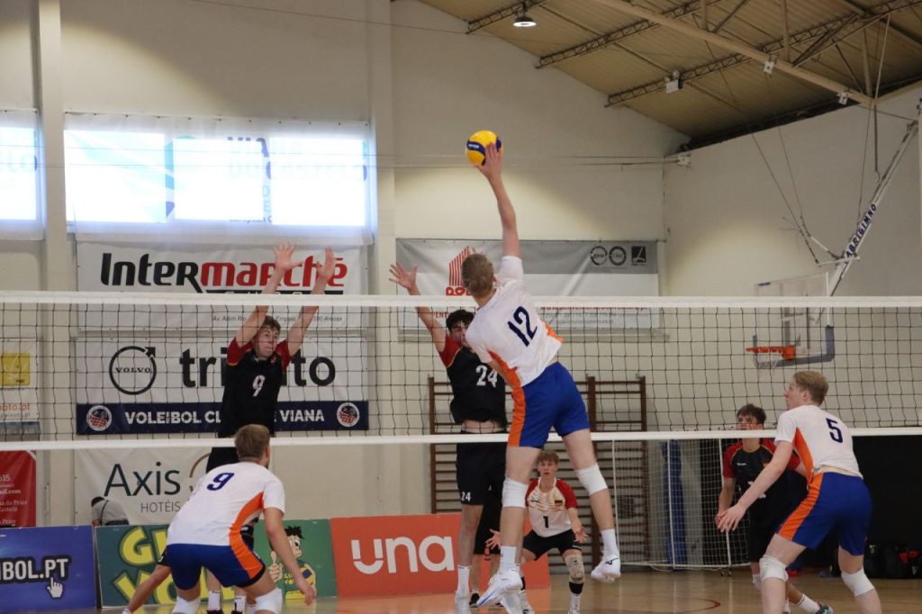 The beginning of the game will have been a little surprising for the Belgians, who presented a six base different from the clash with Portugal the day before… Unable to sustain the Dutch services, especially those of Xander Bomert and Lukas Sleurink, Belgium faced enormous difficulties in properly arming its attack, which often ended up dying in the Netherlands bloc. Losing by seven points (6-13, 9-16) against a powerful opponent in the attack and solid in the high defense, Mieke Moyaert’s team could do nothing more than try to fight until the end and the Netherlands sealed the set with the result of 25-18. In the second set, the Dutch were losing by four points and ended up winning by that difference: 25-21, with Xander Bomert and Saimen Hage increasing their punctual hoard to 10 points. In the third, and after some balance (10-10), the Netherlands managed to create a difference of three points (16-13), which would eventually become five (25-20) due to the break of the Belgians in the final moments of the game. The Dutch Saimen Hage, with 14 points, was the best scorer, followed by the Belgian Wannes Van Alboom, with 13.