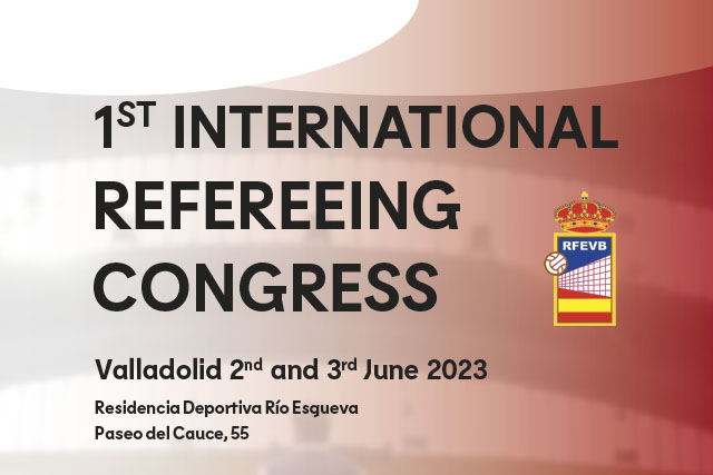 The Royal Spanish Volleyball Federation organizes on the 2nd and 3rd June 2023 the 1ST INTERNATIONAL REFEREEING CONGRESS that will take place in Residencia Deportiva Río Esgueva, Paseo del Cauce, 55, Valladolid – Spain.